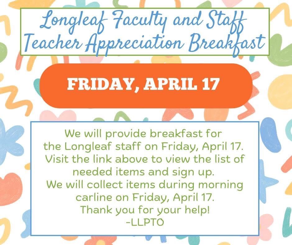 Teacher Appreciation Breakfast on Friday